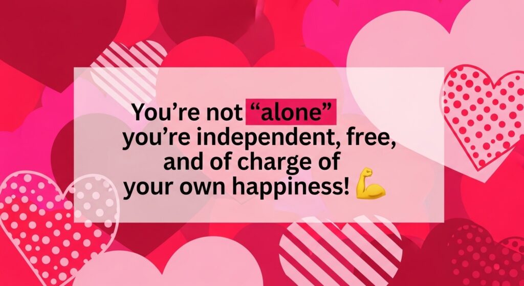 The mindset: You’re not “alone”—you’re independent, free, and in charge of your own happiness! 💪